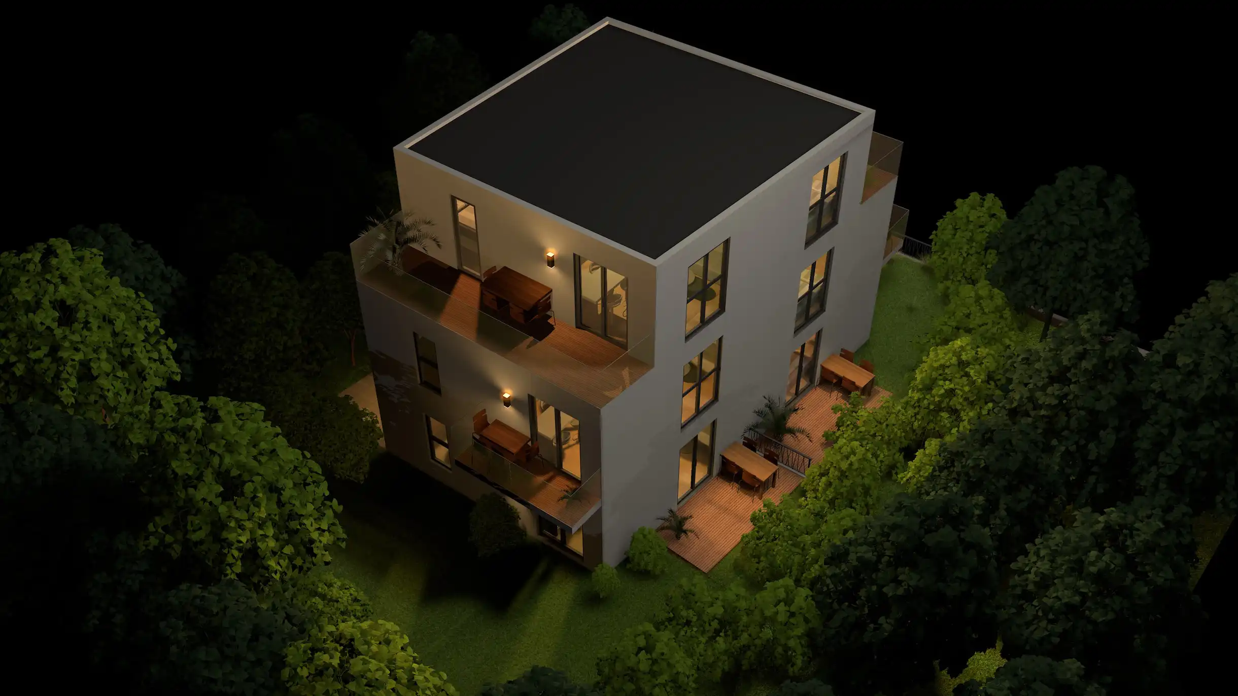 Projekt třípodlažního pasivního domu zahrnuje pouze 5 bytových jednotek, které poskytují dokonalé soukromí, klid a bezpečí.